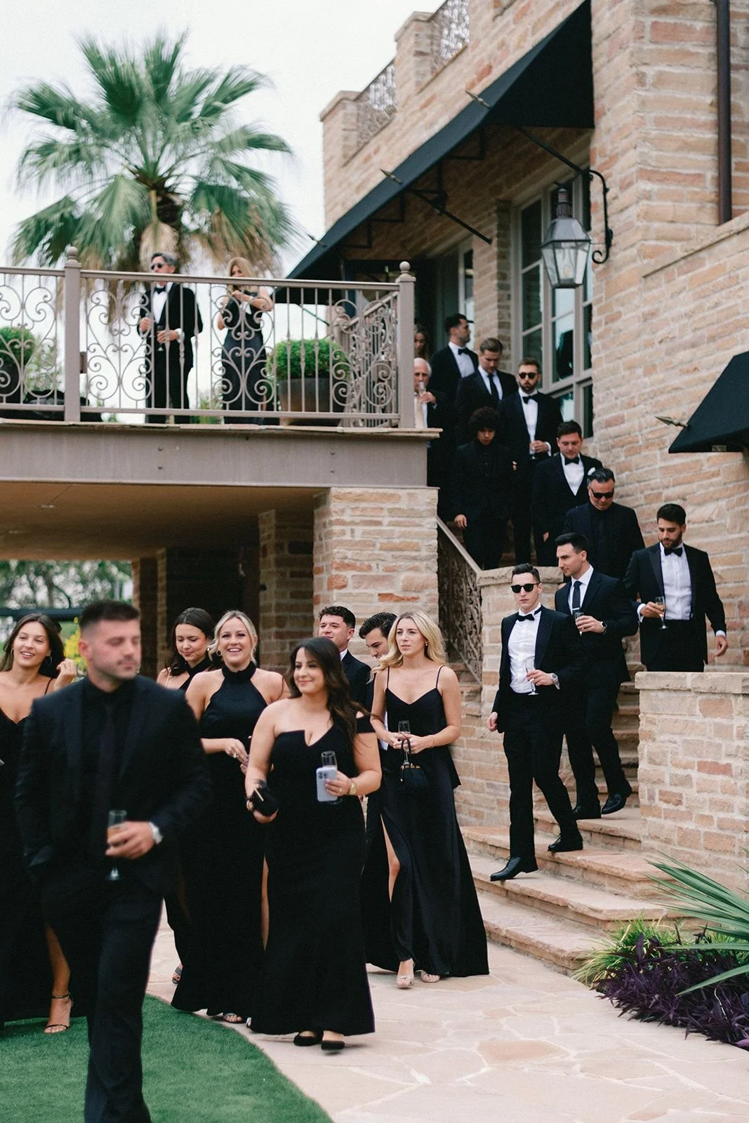 Vi önskar att alla gäster klär upp sig i svart från topp till tå för en elegant och enhetlig känsla under vårt bröllop. Det är självklart helt okej att addera personlighet med accessoarer i färg.